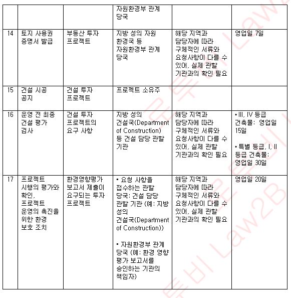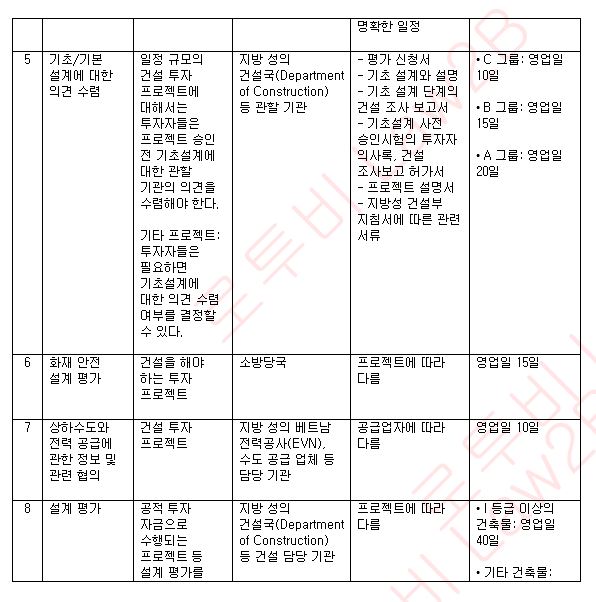 이에 전체적인 베트남의 건설 프로젝트 수행 절차를 표로 정리하였습니다.